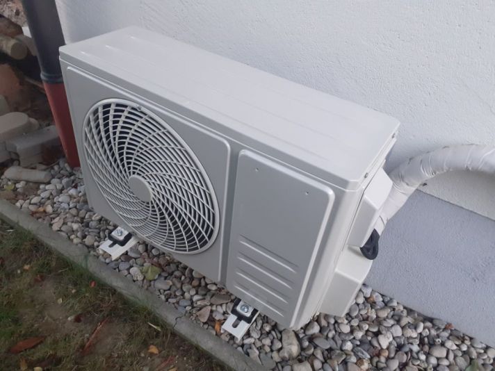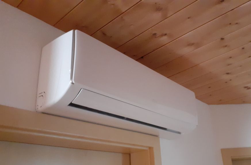 Fest montiertes Innengerät im Hausgang und einem fest montierten Außengerät.