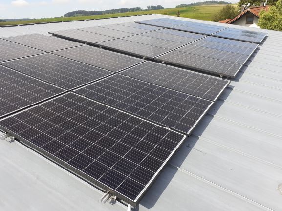Montage auf Blechdach der Garage. Aufständerung 7° Richtung Süden